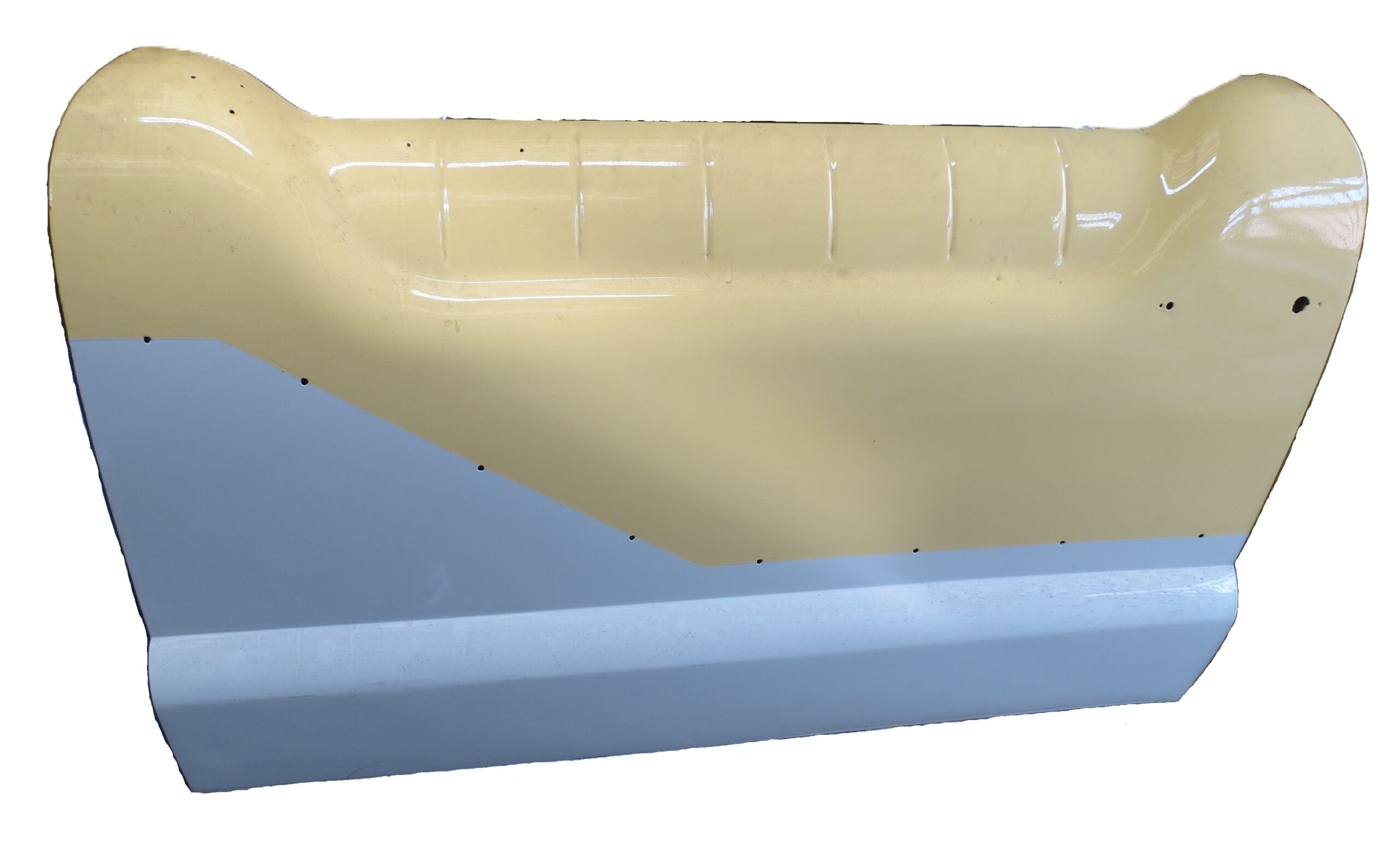 This is for the “early” style doors with the round push button on the handle. Does not include any additional components, which can all be purchased separately. May or may not have holes for the side trim.